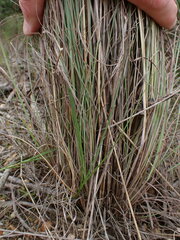 This is a perennial grass forming clumps 30 centimetres to one metre tall with tough, dense bases sprouting from rhizomes. The inflorescence atop the wiry stem is a panicle of hairy spikelets with bent awns up to 3.5 centimetres long. The grass can grow in a variety of habitat types, in dry conditions, heavy, rocky, eroded soils, and disturbed areas.